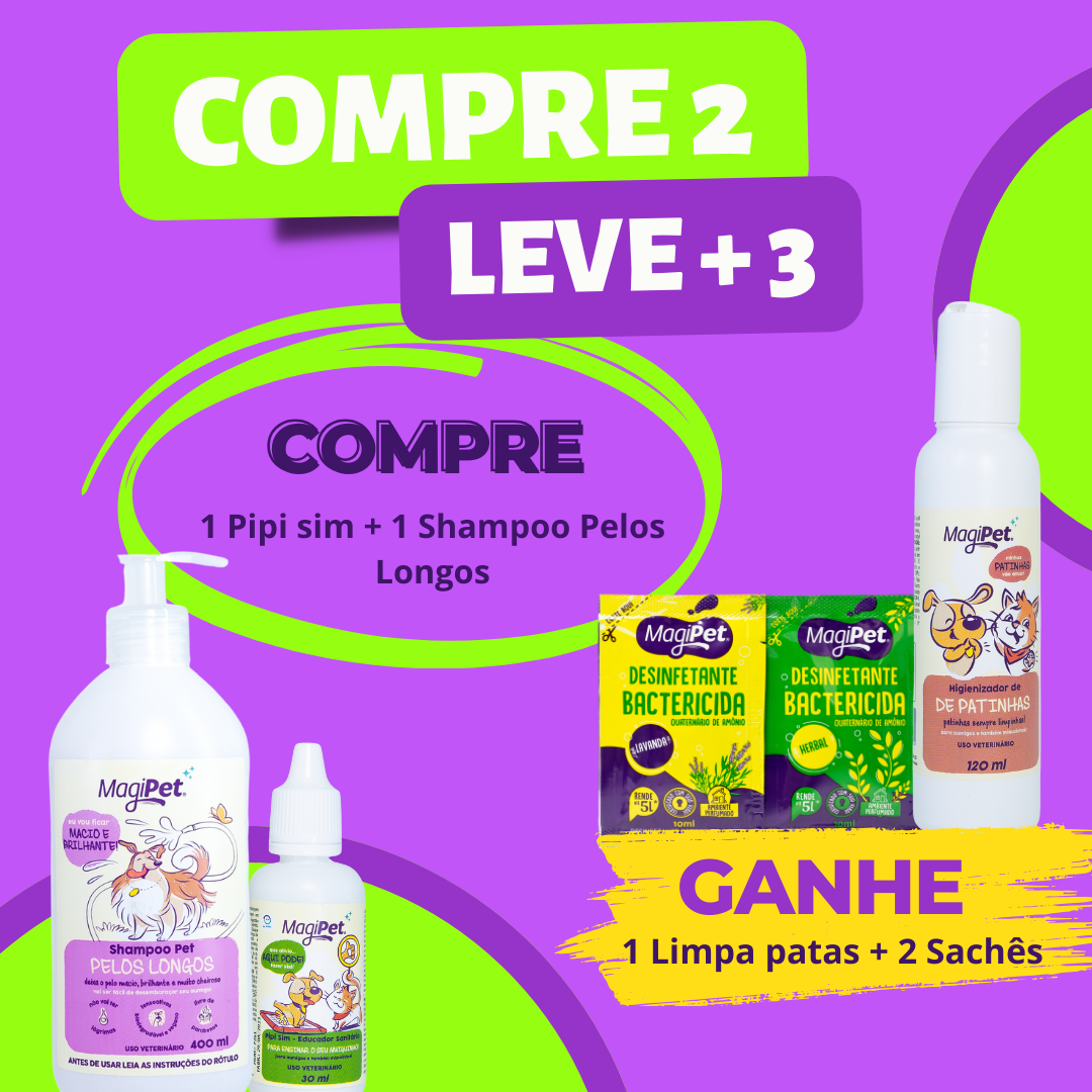 Na compra de 1 EDUCADOR SANITÁRIO PIPI SIM + 1 SHAMPOO PELOS LONGOS, ganhe de BRINDE 1 LIMPA PATAS + 2 SACHÊS